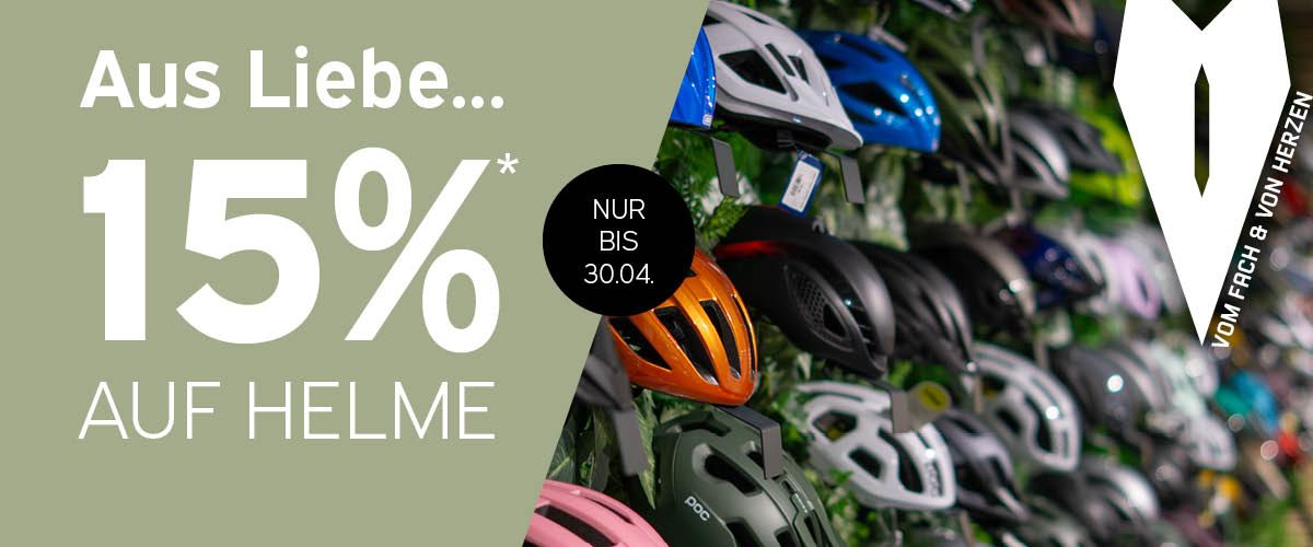 Bike schon gekauft aber der Helm fehlt noch: Bis 30.04. gibt's bei RADLHERZ 15 % Rabatt auf alle Helme.