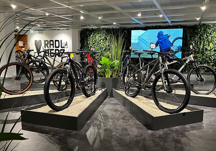 Einzigartiges Einkaufserlebnis als Storekonzept. Die Kernaufgabe der Ladengestaltung war demgemäß die Entwicklung eines innovativen Konzepts, um unseren Kunden nicht nur eine beachtliche Fahrradauswahl, sondern ein einzigartiges Einkaufserlebnis zu bieten.